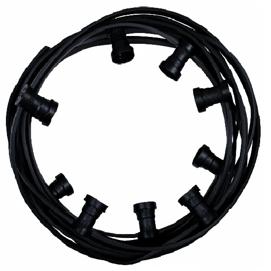 500m Endlos Illu Lichterkette mit 500 montierten E27 Fassungen inkl. Lampendichtungen (Lampenabstand: 1m), ideal zum Bau eigener Illu Lichterketten – einfach nach Bedarf ablängen, schwarze Leitung (H05RNH2-F 2×1,5mm²), Stecker und Endstück (nicht im Lieferumfang enthalten) anschließen – fertig. Stückgeprüft- deutsche Qualitätsware.