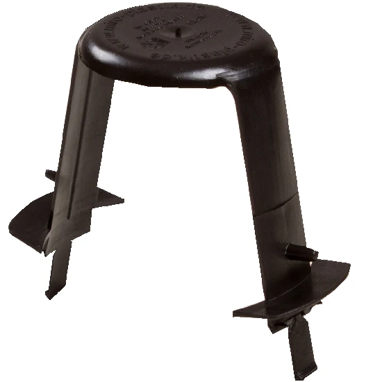 Abstandshalter für Deckeneinbaustrahler, Folie und Dämmmaterial werden vom Leuchtmittel ferngehalten, für Bohrungen von 60mm bis 82mm, Höhe 100mm, Polyamid glasfaserverstärkt, flammhemmend, halogenfrei, 2-Bein Ausführung für nachtragliches Drehen des Strahlers, Klemmsteinhaltenase, abdrehbare Montagelaschen, TÜV geprüfte Sicherheit.