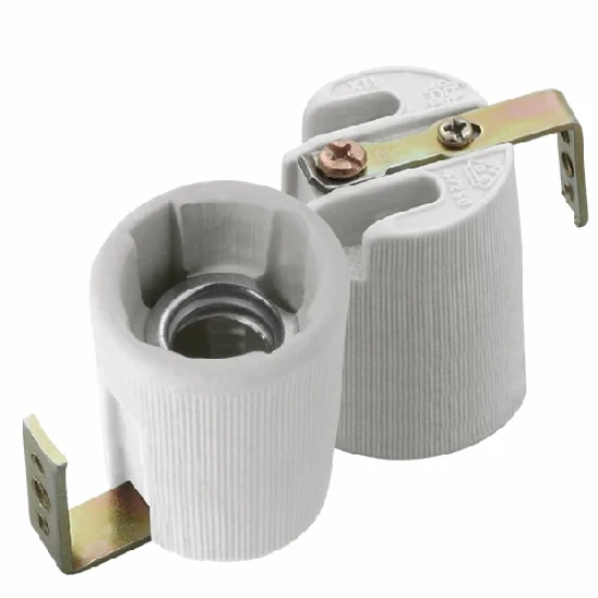 E14 Keramik Fassung, Anschlußklemmen bis 2,5mm², max. Fassungstempertur 180°C, 250V, 2A, mit Befestigungshalter, Farbe grau.