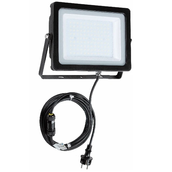 LED Fluter 100 Watt Flache Bauform Schwarz Mit 3m Zuleitung Und Netzstecker
