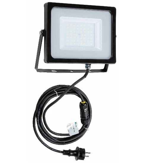 LED Fluter 50 Watt Flache Bauform Schwarz Mit 3m Zuleitung Und Netzstecker