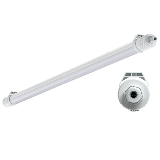 LED Rohrleuchte IP65 1.500mm mit einstellbarer Lichtfarbe, für Tiefgaragen, Parkhäuser, Kellerbereiche, Lager etc., robust und schlagfest bis 8J (IK10), 230V, mit Durchgangsverdrahtung, Gehäuse aus bruchsicherem Polycarbonat, IP65 für den Innen- und Außenbereich, inkl. Montageschellen, durchschnittliche Lebensdauer 50.000h, Lichtfarbe über DIP Schalter einstellbar – wahlweise warmweiß (3.000 Kelvin, 5.500 Lumen), neutralweiße Lichtfarbe (4.000 Kelvin, 5.880 Lumen) oder tageslichtweiß (6.000 Kelvin, 5.880 Lumen), 42 Watt Leistung, D-Ausführung (früher FF-Zeichen) auch für feuergefährdete Betriebsstätten gemäß DIN 0100, Maße: 1.500 x 51mm (L x D), fest eingebautes LED Leuchtmittel.