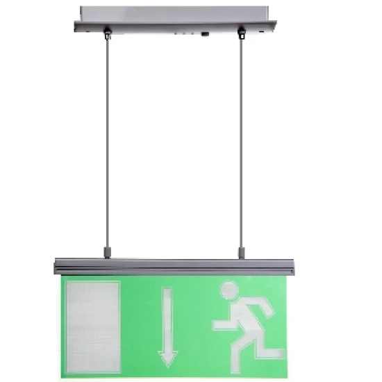 LED-Sicherheits-Notleuchte als Pendel-, An- und Einbauleuchte verwendbar, auch für den seitlichen Anbau geeignet, elegantes modernes Design für Büro- und Verkaufsgebäude, Messen etc., IP40 für den Innenbereich, inkl. Piktogrammscheiben (zweiseitig) für Rettungsweg rechts, links und geradeaus/unten, 230V, 50/60 Hz, 3Watt, 24m Erkennungsreichweite (nach DIN 4844), entspricht EN 60 598-1:2008, EN 60 598-2-22, A1:2003 und A2:2008,wahlweise anschließbar in Dauerschaltung (Notleuchte leuchtet im eingeschalteten Zustand ständig – schaltet im Notbetrieb (Stromausfall) auf Akkuversorgung um) oder in Bereitschaftsschaltung (Notleuchte leuchtet nur im Notbetrieb bei Stromausfall), Leitungsnetz und Batterieentladung werden über LED angezeigt, inkl. wiederaufladbarem, wartungsfreiem, elektronisch überwachtem und gasdichtem NC-Akku, Notlichtdauer 3h.