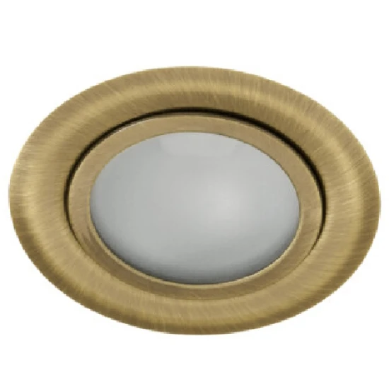 Möbeleinbaustrahler starr messing matt mit satiniertem Schutzglas, für LED Stiftsockel-Leuchtmittel 12 V, G 4, max. 10 W (Leuchtmittel im Lieferumfang nicht enthalten), Deckenausschnitt: Ø 60 mm, Außen-Ø: 73 mm, für Leuchtmittel aller Energieeffizienzklassen von A bis G geeignet (Werteskala von A bis G, Bestwert ist A).