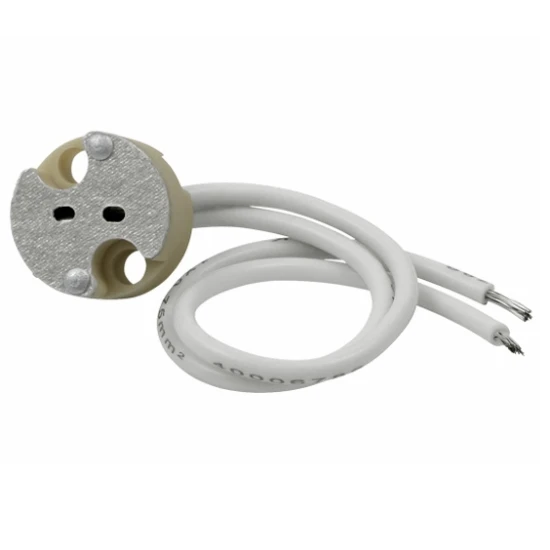 für NV-Halogenlampen, max 25V, 4A, Keramikkörper, mit ca. 145mm Silikon-Anschlußleitung, 2×0,75mm², für Sockel G4, GX/GU 5,3 und GY 6,35.